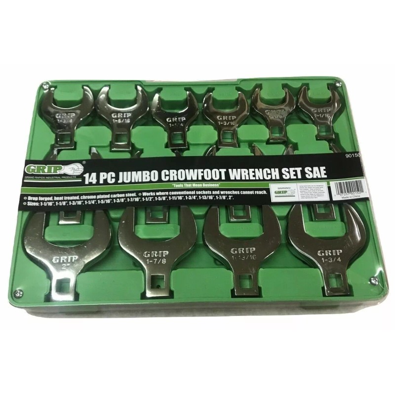 GRIP 14pc GRIP SAE Jumbo Crow Foot Wrenches Set Crowfoot 1 1/16 - 2" Open End 90150