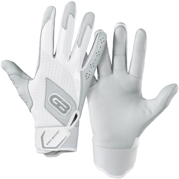 Grip Boost Loaded Baseball Batting Gloves with Boost Plus Leather - Adult Sizes (White, X-Large)
