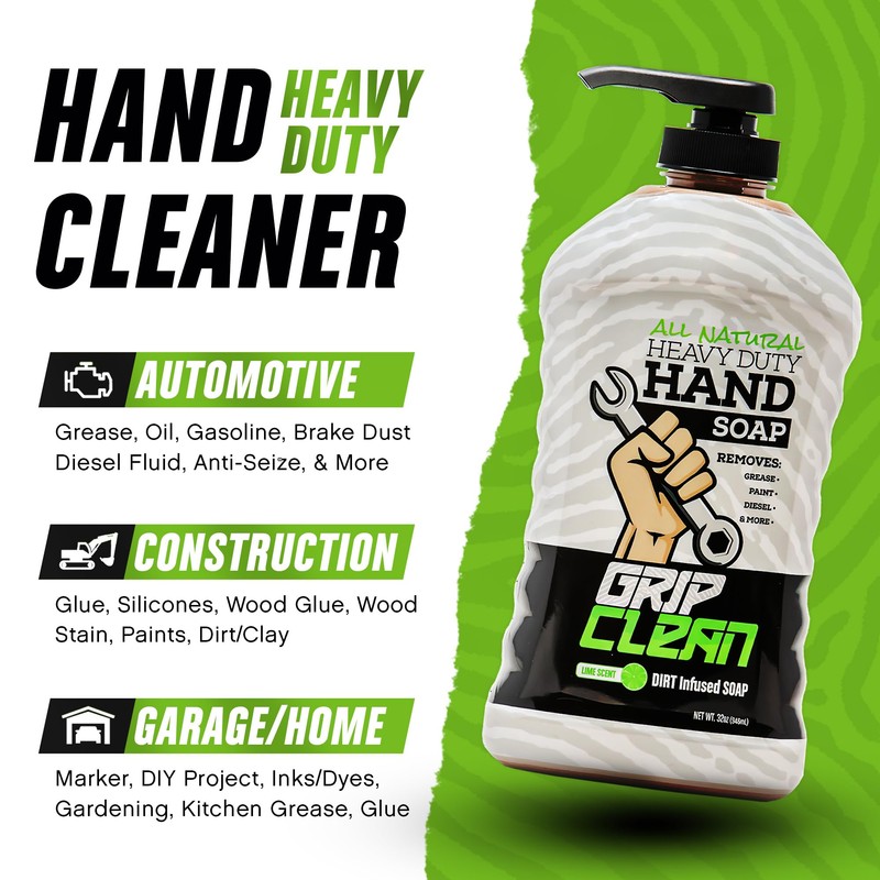 - Grip Clean Promise: Get spotless, refreshed hands every time you wash! Grip Clean's mechanic soap formula ensures ultimate cleanliness without leaving your hands dry or cracked. Perfect for auto mechanics and those handling tough, greasy jobs.