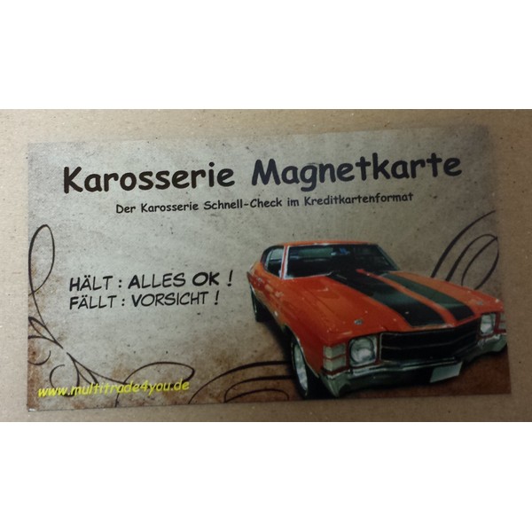 - With this magnetic card, you can quickly and easily determine whether everything is in order with your vehicle or with what you want to buy on the body.
