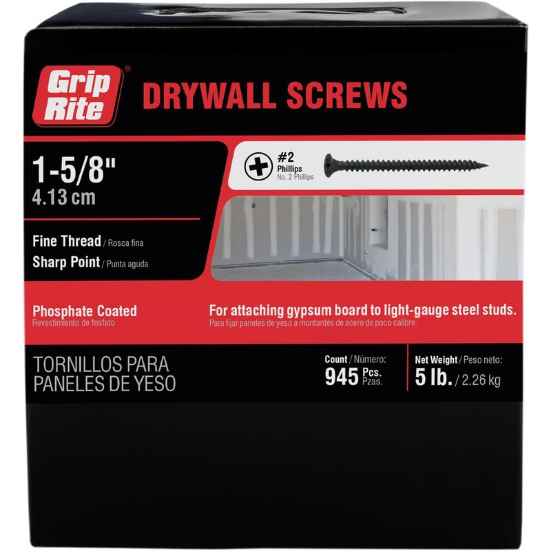 Grip-Rite 158DWS5#6 X 1-5/8" Phillips Bugle Head Fine Thread Sharp Point Drywall Screw, 5lb Box