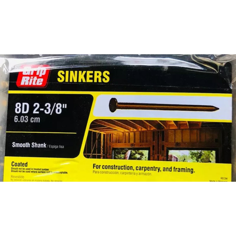 Grip-Rite 8d x 2-3/8” Coated Sinkers Framing Nails 5 lb Box