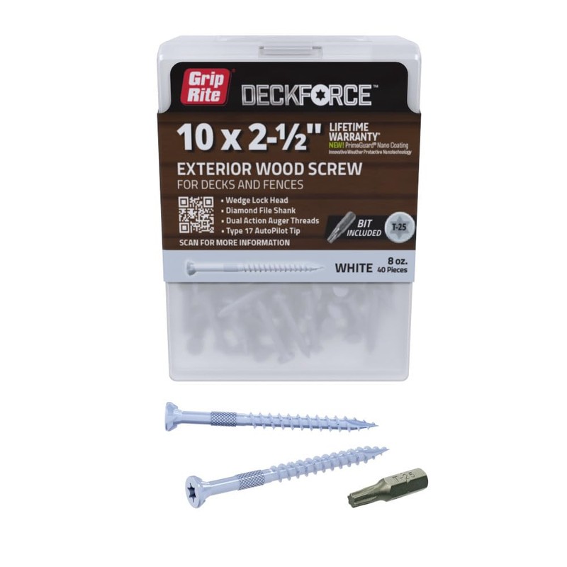 Grip-Rite GRDF212STWH40 DeckForce #10 x 2-1/2" Nano Coated Wood Screws, White, 40 Count Box