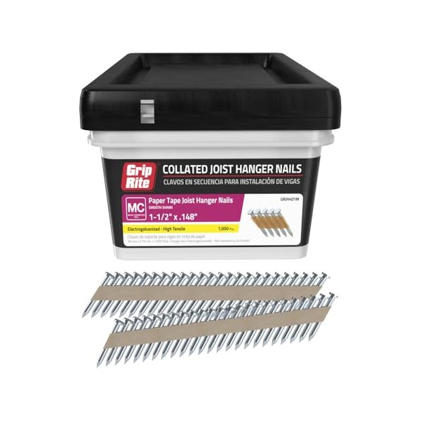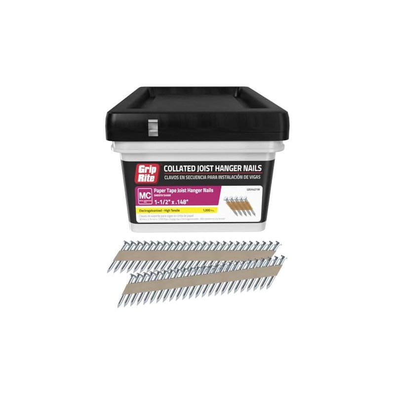 Grip-Rite GRJH4D1M, Collated 33-degree Paper Joist Hanger Nails, 1-1/2" x .148, Heat Treated, 1,000 Nails, Job Pack
