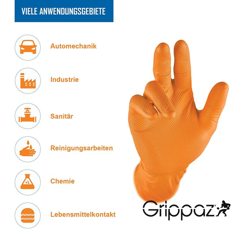 Grippaz Nitrile Gloves (Pack of 50) Latex-free Work Gloves, Extremely Robust and Tear-resistant, orange