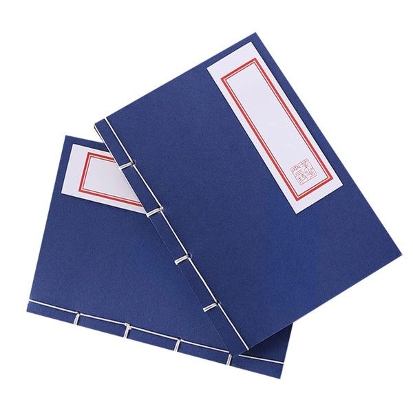 GRIRIW 2pcs Creative Ancient Hand-made Thread Diary Notepad Blue Cover Notebook for Daily Notes Retro Design for Friends