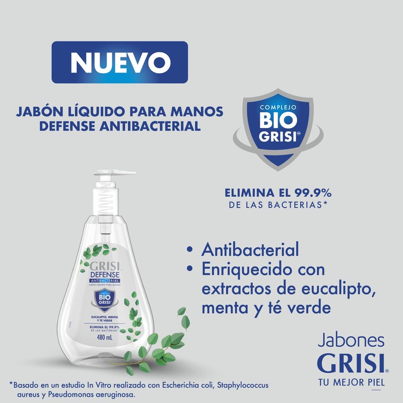 GRISI | Jabón Líquido para Manos Defense, 480 ml | Antibacterial, elimina el 99.9% de las bacterias.