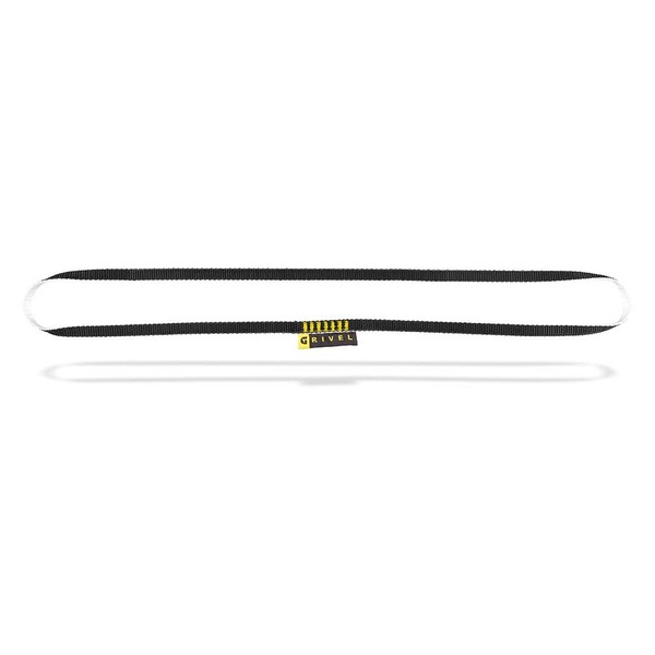 - Made with Dyneema on the inside and polyester on the outside, this unique webbing ring exists in different sizes with color coding: 60cm (black), 120cm (red) and 180cm (blue).