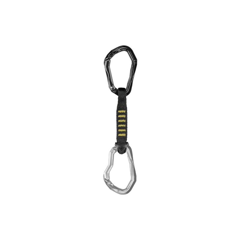Sport climbing quickdraw, with Stealth standard-gateand bent-gatecarabiners. The new Sport Stealth uses the homonymous carabiner with the famous and unmistakable Grivel multi-faceted “stealth” design. The Stealth carabiner is especially designed for sport climbing and it features a large opening of the lever together with a straight nose to ensure an easy and fast clipping, with minimal wrist rotation. The sling comes in two lengths: 13 and 18 centimeters; the sling is wide to offer you an optimal grip and excellent durability. This quickdraw, specifically designed for sport climbing, matches perfectly the Grivel Trend collection. Activities: sport climbing Materials/construction/technologies: hot forged aluminium, polyester Certifications: CE EN 12275 - Class B, UIAA 121 & CE EN 566, UIAA 104 Weight: 105g (3,7 oz)