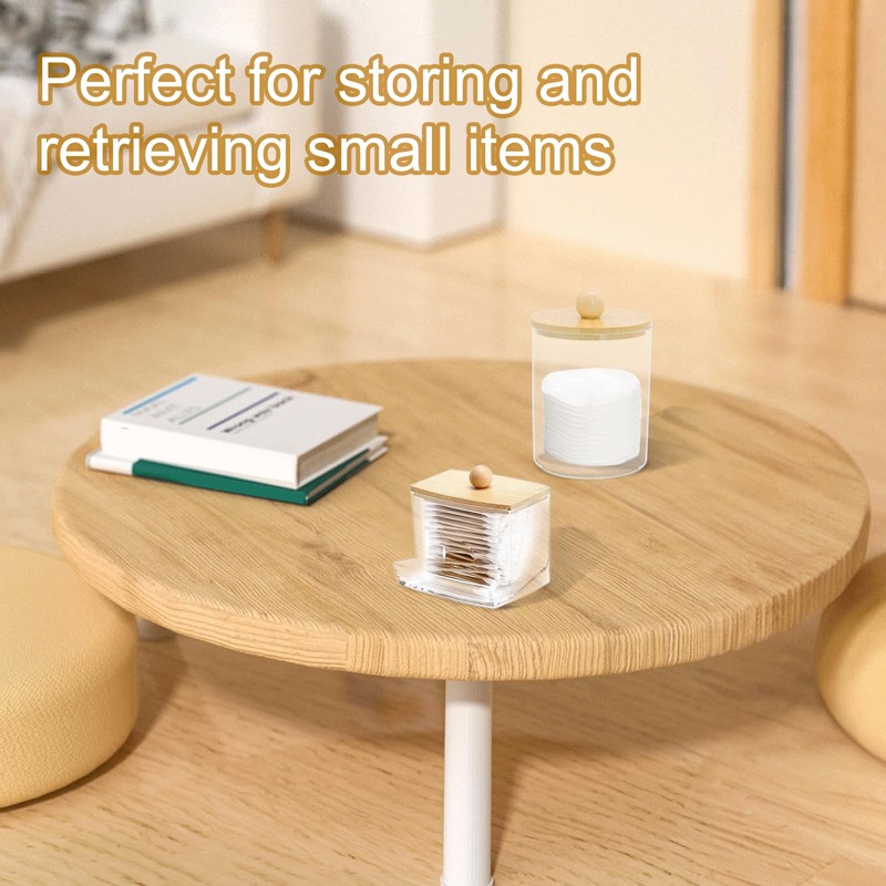 - Set includes: 4 piece cotton pad storage set with 2 round 1 U shaped 1 square and bamboo lids. This set provides a complete solution for various storage needs