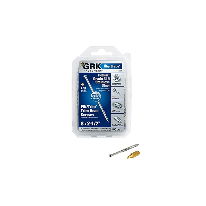 GRK 147730#8 x 2-1/2" FIN/Trim™ 316 Stainless Steel Finish Screws 100 Count