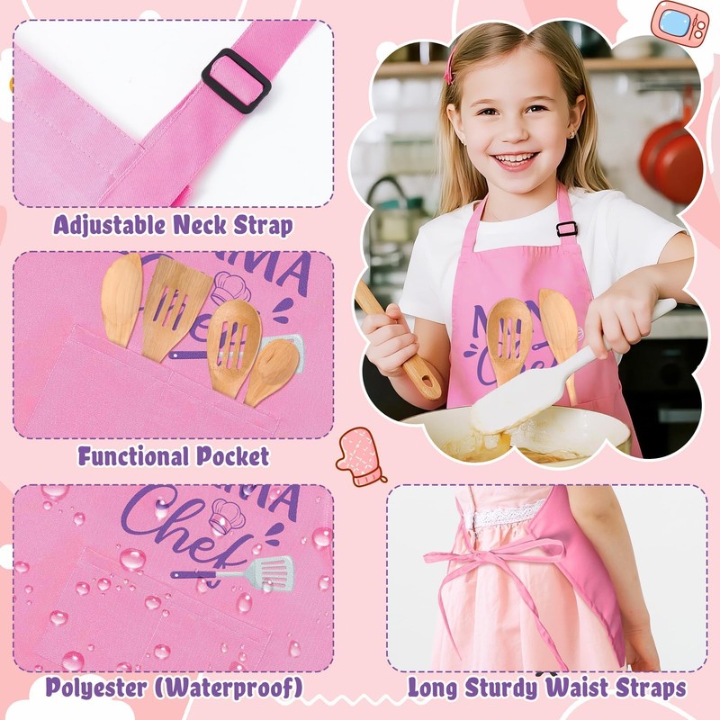 - Cute Designs: The package contains 2 set adult and kids apron sets, printed with pink mama chef and mini chef pattern, bright color and vivid pattern, cute and attractive, it can stimulate children's creativity and imagination.