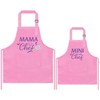 GROBRO7 2Pcs Kids Adult Apron Set Gift for Mother and Child, Pink Mama and Mini Chef Pattern Adjustable Kitchen Aprons with 2 Pockets Waterproof Smocks Chef for Baking Cooking Painting Training