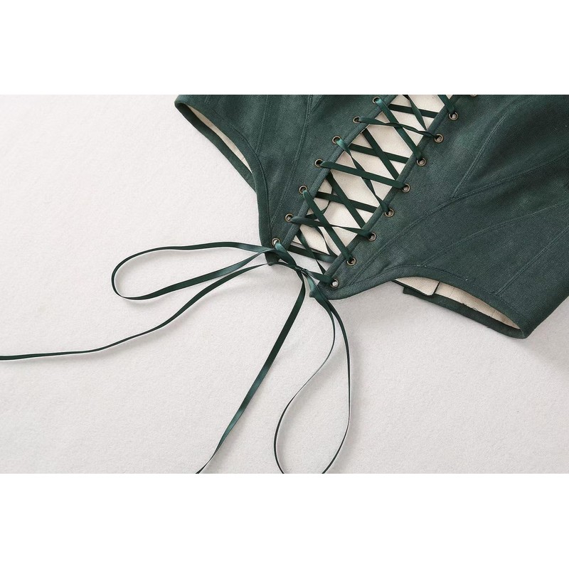 Grodress Renaissance Corset Vest Tops for Women Dark Green Linen Overbust Bustier Bodice Summer Sleeveless Drawstring Crop
