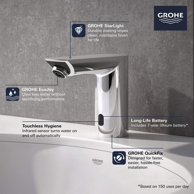 GROHE 36468000 Bau Cosmopolitan E Touchless Electronic Faucet Less Mixing, Battery-Powered, DC, Starlight Chrome