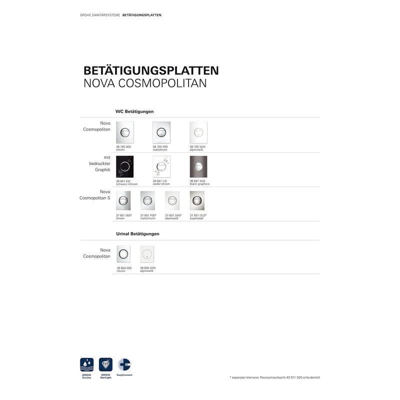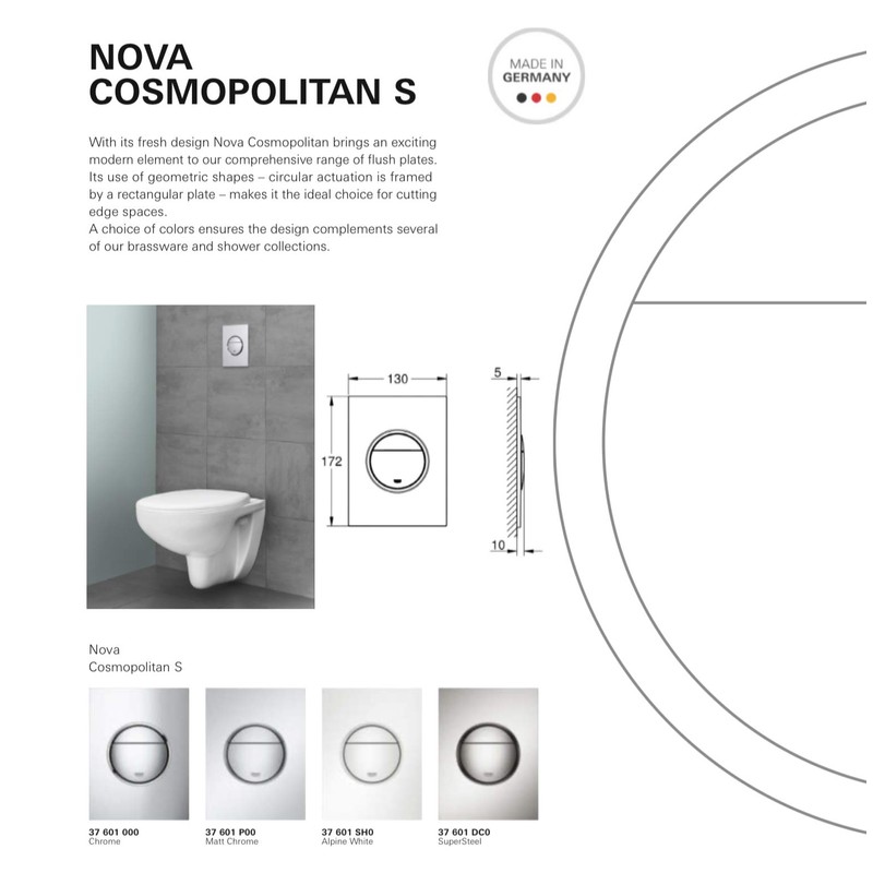 Grohe Nova Cosmopolitan 37601SH0 S S Size Toilet Actuator Plate with Alpine White 130 x 172 mm
