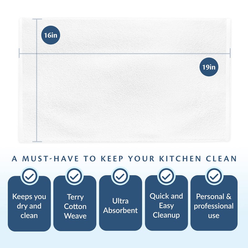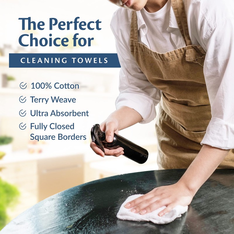 Our white dish towels for kitchen have a terry cotton fabric material, which makes them ultra-absorbent. They don't only keep your home squeaky clean, but they're also trusty restaurant towels, bar cloths, cotton dish cloths, and wash clothes for bathroom.