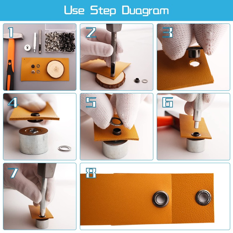 • Wide Application: This eyelets and grommets is suitable for shoes, clothing, shoelaces, DIY crafts projects, canvas, tarps, tents, awnings and leather crafts.