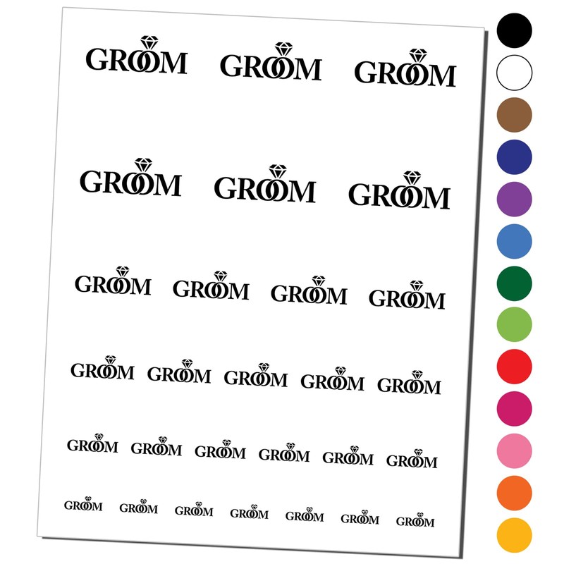 Groom Diamond Detail Wedding Love Temporary Tattoo Water Resistant Fake Body Art Set Collection - Black (One Sheet)