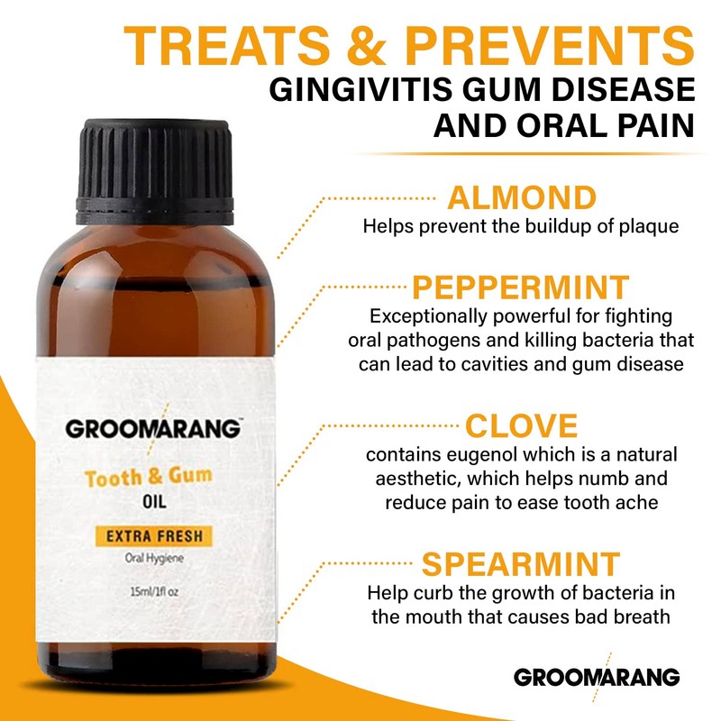 • VERSATILE - Use Groomarang extra strength dental and gum oil to maintain a high standard of dental care. Use as a replacement or addition to your regular toothpaste. Use it as a mouthwash, diluted in water, or simply as an ointment, applied directly to your gums and teeth.