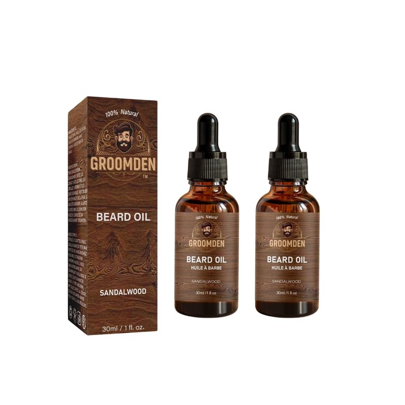GROOMDEN - Beard Oil - Natural Beard Oil for Men - Jojoba, Olive, Rosemary & Moroccan Oils with Sandalwood Scent - Nourishing & Hydrating Beard Care. (2-Pack)