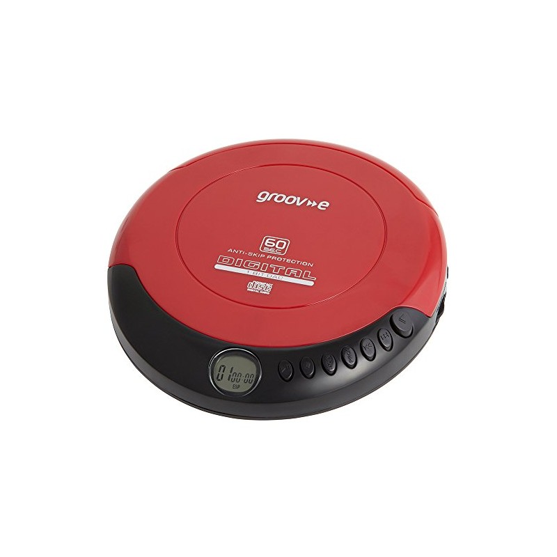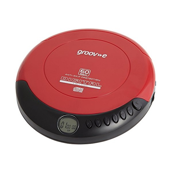 Groov-e GVPS110RD Retro Personal CD Player with 20 Track Programmable Memory, LCD Display, Anti-Skip Protection and Earphones Included - Red