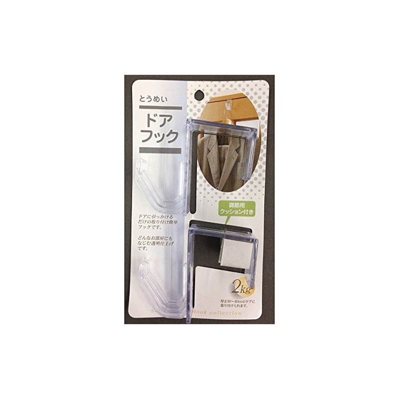 • Size of 1 piece: Approx. 1.2 x 2.6 x 3.3 inches (30 x 67 x 85 mm); Color/Transparent; Material: Styrofoam resin; Cushion: Polyethylene; Product Name: Happy Door Hooks; Applications: Door Hooks; Keyword/Fuku; Doyofuku; Dowaku; Series: L1200 7 □ Control Units. 10 pieces / 300 pieces / Quantity: 2 pieces