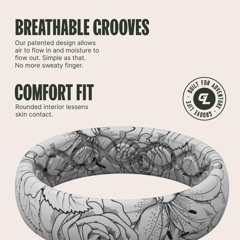 Groove Life Aspire Winter Rose Silicone Ring Breathable Rubber Wedding Rings for Women, Lifetime Coverage, Unique Design, Comfort Fit Ring - Size 9