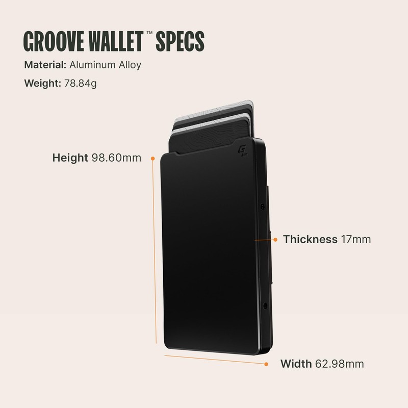 - MATERIALS; The Groove Wallet is crafted from high-grade 6063 Aluminum Alloy, the same material used in the construction of airplanes. Its front cover is secured in place by powerful magnets, making it easy to open and close while also being safe for use around electronic devices and credit cards.