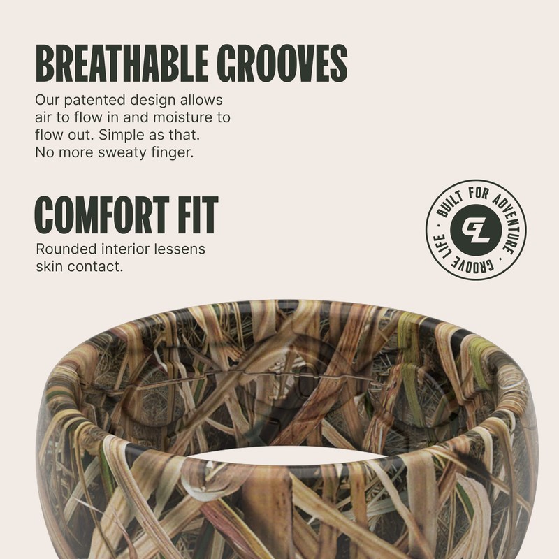 Groove Life Mossy Oak Blades Camo Silicone Ring Breathable Rubber Wedding Rings for Men, Lifetime Coverage, Unique Design, Comfort Fit Ring - Size 12