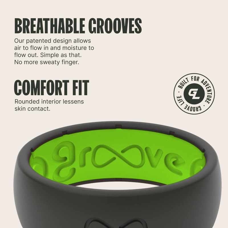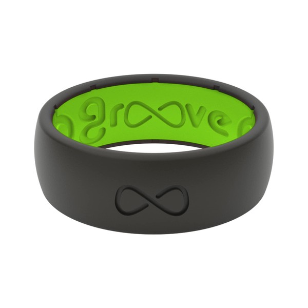 Groove Life Solid Black/Green Ring - Breathable Silicone Wedding Rings for Men, Lifetime Coverage, Unique Design, Comfort Fit Ring - Size 11