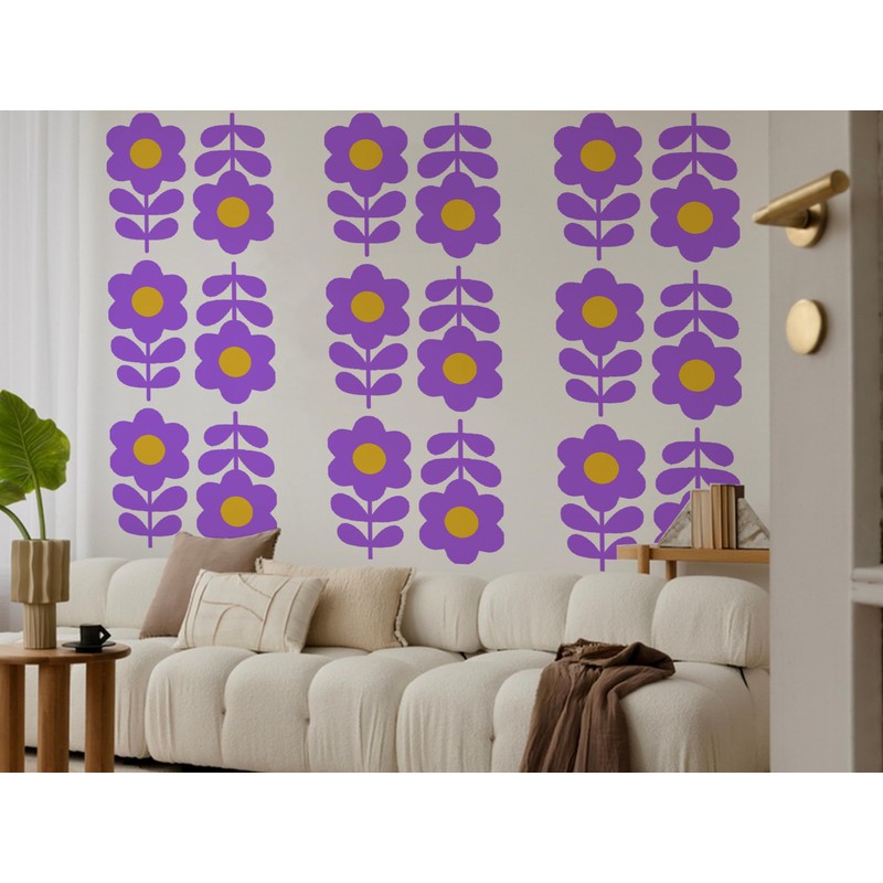- MID-CENTURY MODERN DESIGN: Featuring a stylish blend of retro daisy flowers and geometric shapes, this wall decal adds mid-century modern charm to any room.