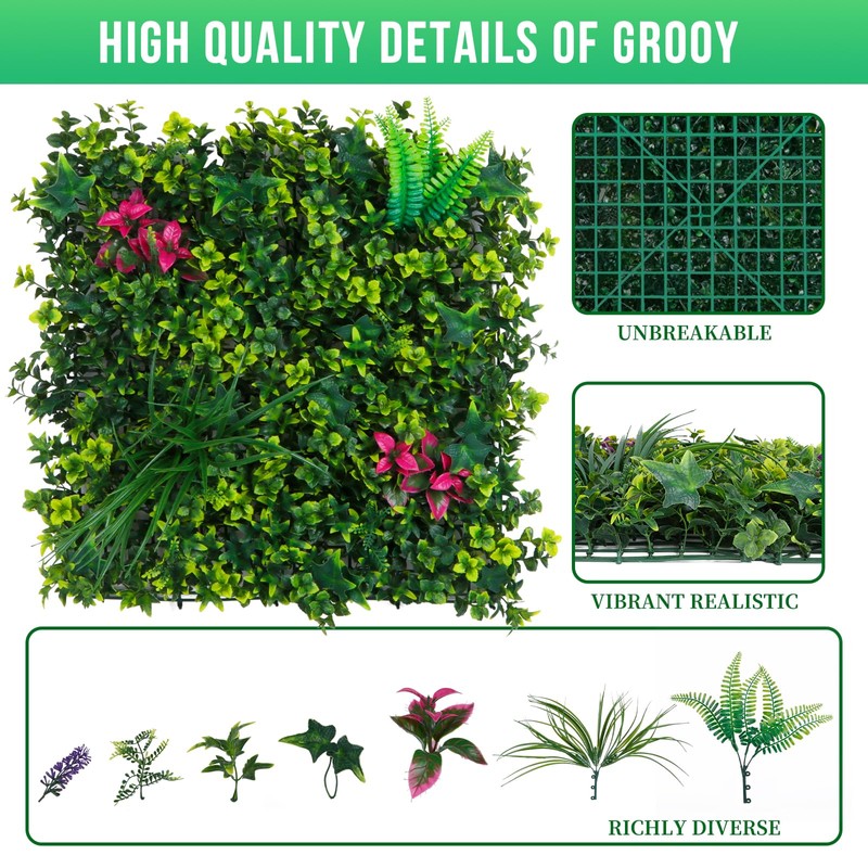Grooy Boxwood Panels, Grass Wall 20"x20"(12pcs), Plant Wall, Grass Backdrop Wall, Privacy Screen, Sun Protected Green Wall Decor for Outdoor, Indoor, Garden, Backyard and Décor