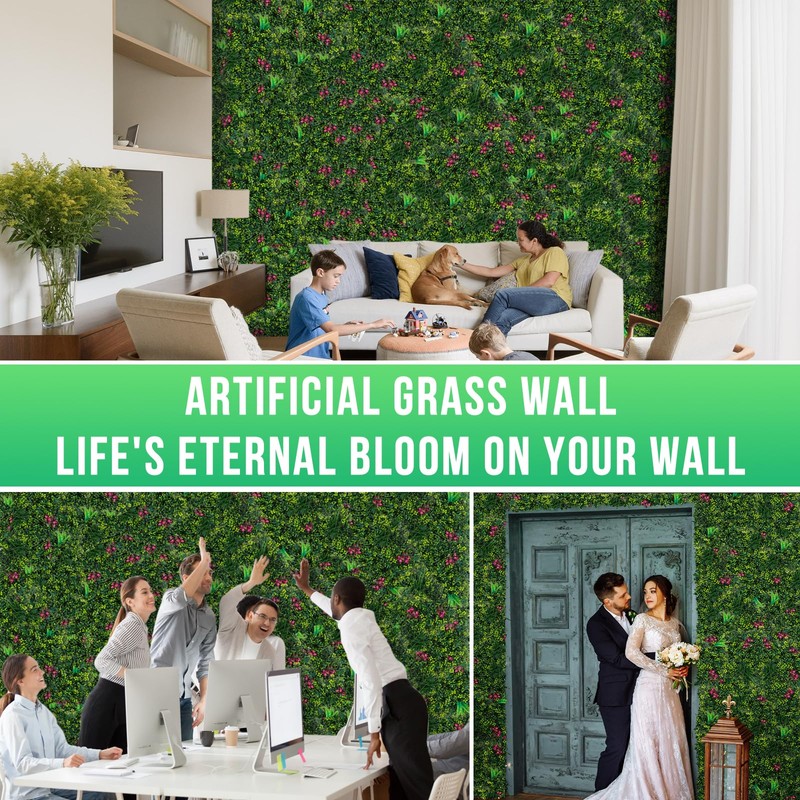 - đżăVersatile, Inside and OutăThese artificial wall grass panels are versatile and suitable for both indoor and outdoor spaces. Perfect for porches, patios, backyards, living rooms, balconies, or office workspaces, they elevate the aesthetic appeal of any environment.