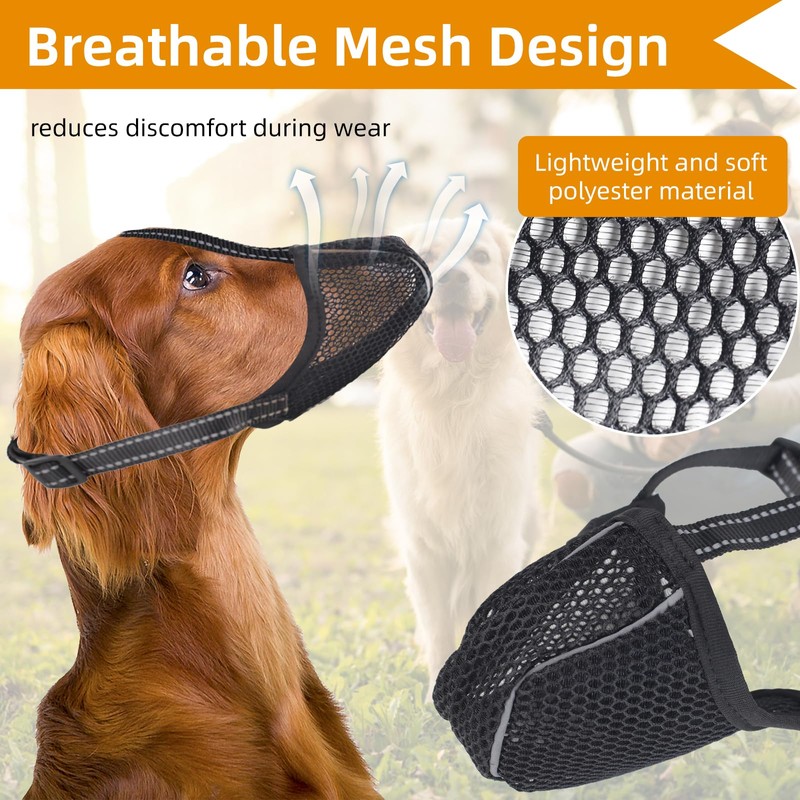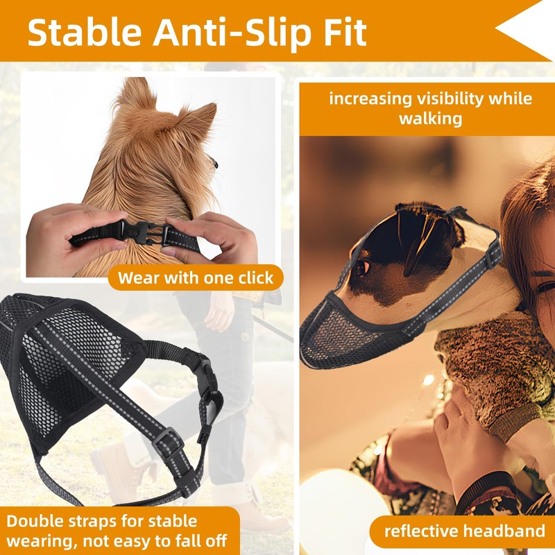 - Stabiler, rutschfester Sitz: Der rutschfeste Gurt enthält ein reflektierendes Kopfband und eine rutschfeste Schnalle, die die Sichtbarkeit beim Spaziergang erhöht und verhindert, dass der Hund den Maulkorb leicht mit den Pfoten abstreift.