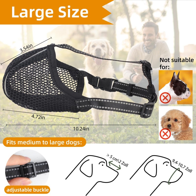 Große Maulkorb, Netzmaulkorb Weicher, Hundemaulkorb Verstellbare für Mittelgroße und Große Hunde, Atmungsaktiv Maulkorb Reflektierende, Hunde Mesh Prevent Beißen Kauen