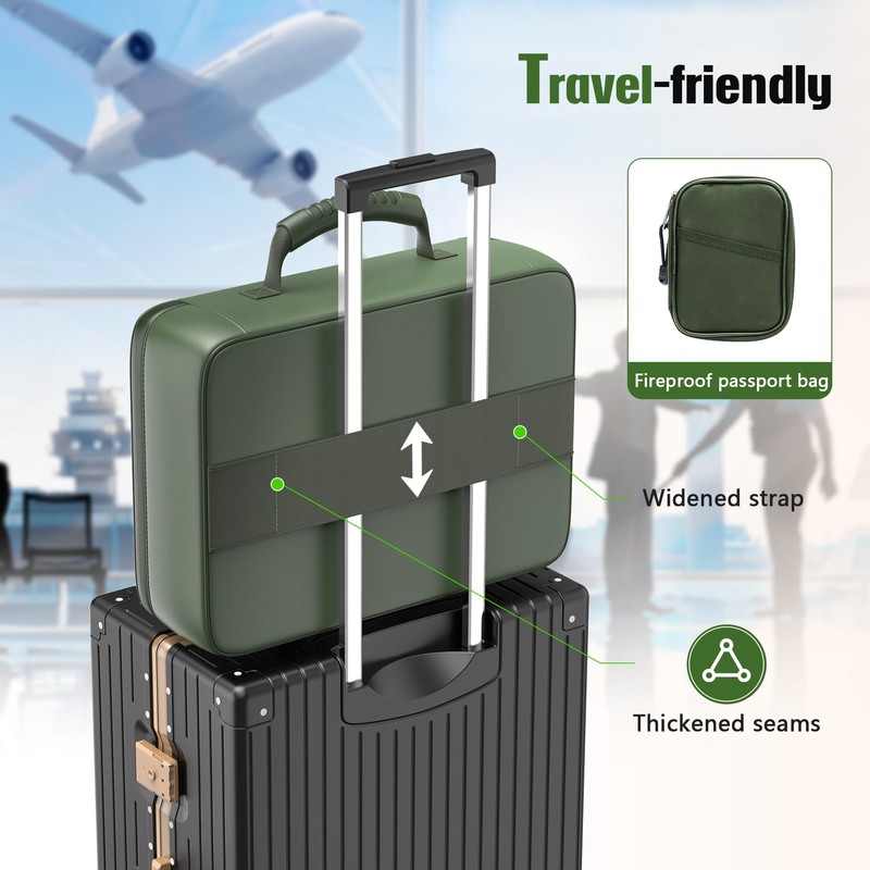 - Thoughtful Details, Refined Experience: Fireproof document organizer features an ergonomically designed, wider handle, offering a more comfortable grip. Compact size, easy to grab in emergencies. Equipped with a silicone waterproof coating, the zipper enhances water resistance and allows for easier opening and closing, ensuring your items stay dry in any weather.The back strap slides onto suitcase handles, making travel easier and reducing shoulder strain. Ideal for travelers or everyday use