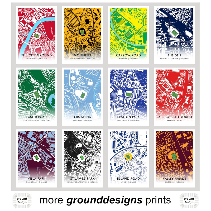 - We have covered nearly every ground in England, Scotland and Wales and are now expanding from prints and mugs into putting our Map range onto t shirts and hoodies to add to the GroundDesigns collection as they look so good on them