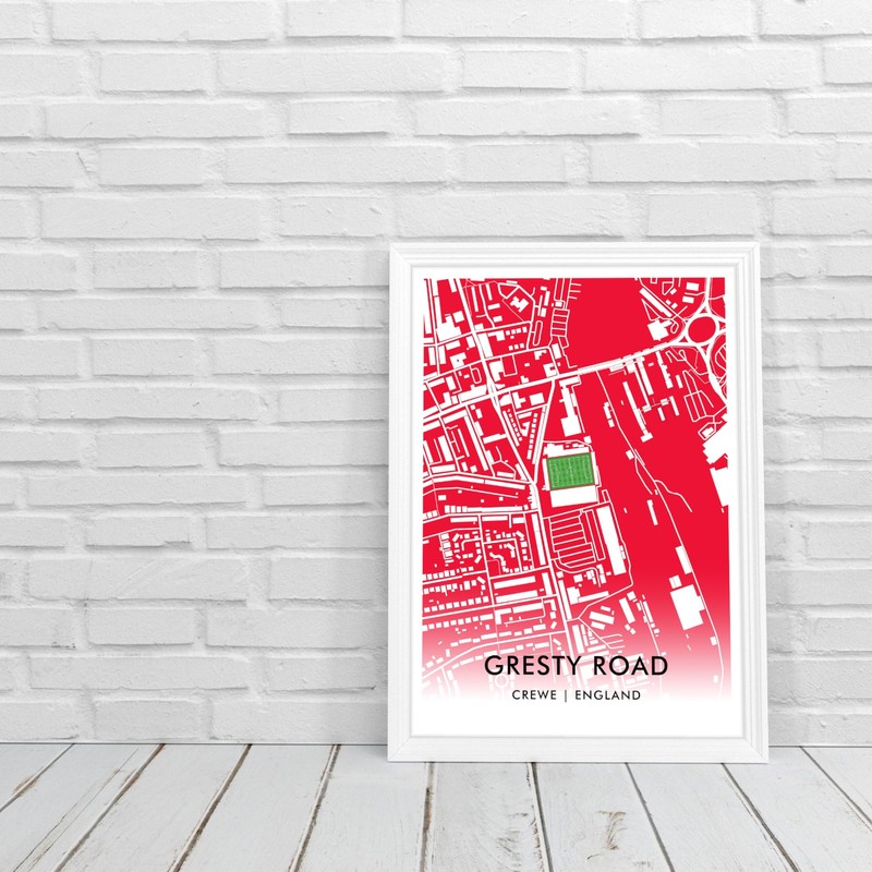 GroundDesigns CREWE ALEXANDRA Football Gift GRESTY ROAD Mornflake Stadium Art Map A3 Print CAFC