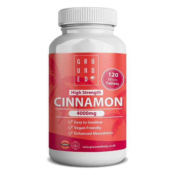 - Grounded High Strength Cinnamon 4000mg, 120 Tablets, 2 Month Supply
