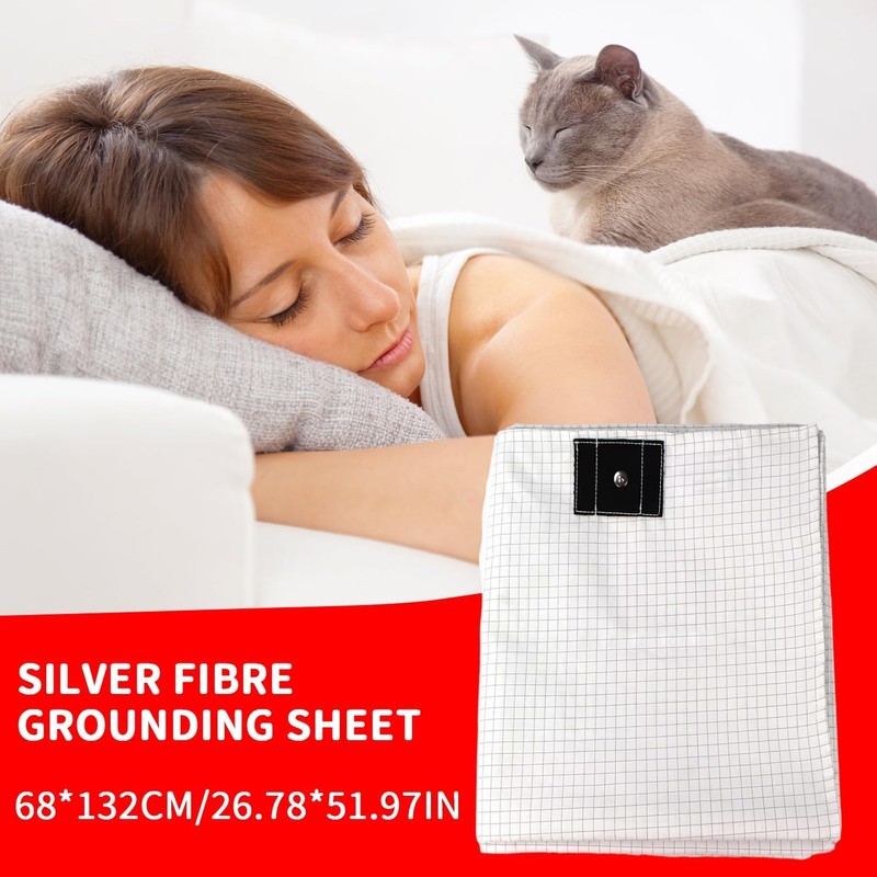 Grounding Bed Sheet for Better Sleep, Earthing Mat, Grounding Bed Sheet Complete Set Including Grounding Mat for Bed in EU Standard, Silver Fibre Organic Cotton Grounding Mat (68 x 132 cm)