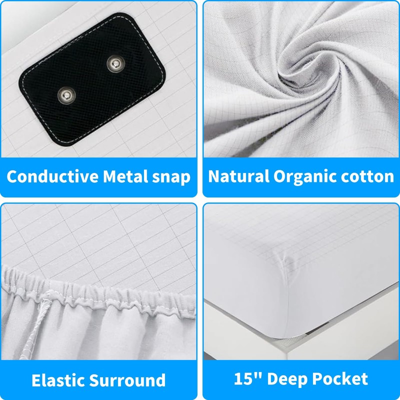 - Grounding Fitted Sheets: This queen-size fitted sheet measures 153 x 203 x 30 cm, providing a snug and secure fit on your mattress. The package includes one fitted bed sheet and a 15 ft grounding cord