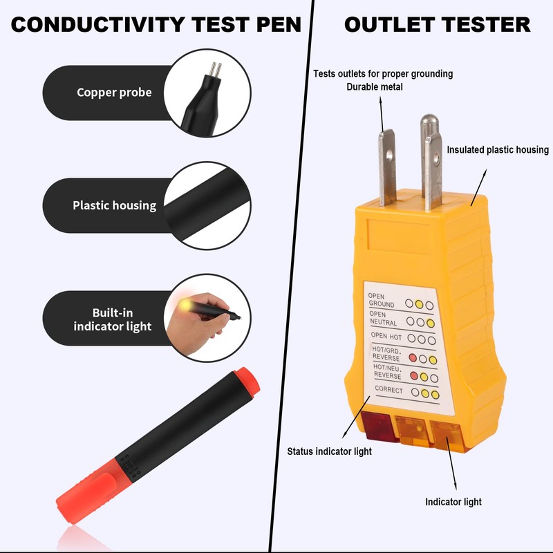 - Product Included: You will receive a comprehensive grounding product test kit, including 1 conductivity test pen and 1 outlet tester, designed to ensure the safety and effectiveness of your grounding products.