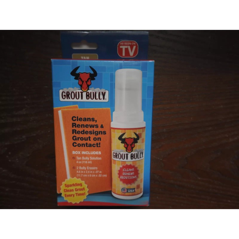 This is a new tan color Grout Bully White 4OZ Cleaning Solution & 2 Bully Erasers. Free shipping is included!
