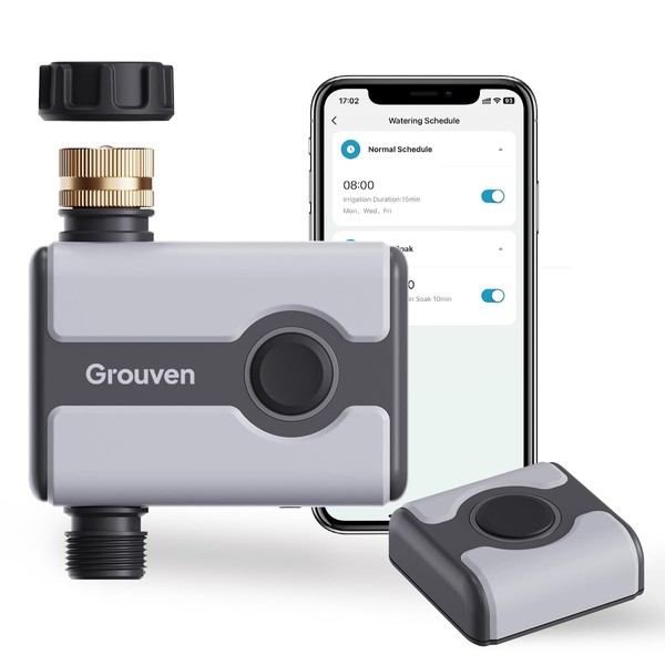 - [APP REMOTE CONTROL] : Grouven Wifi hose timer effortlessly manage your garden's watering schedule from anywhere with the Doodle App. The Watering Timer connects seamlessly to your home WiFi, allowing remote control over a range of up to 50 meters (164 feet).Also you can use Alexa to turn the garden timer on and off.