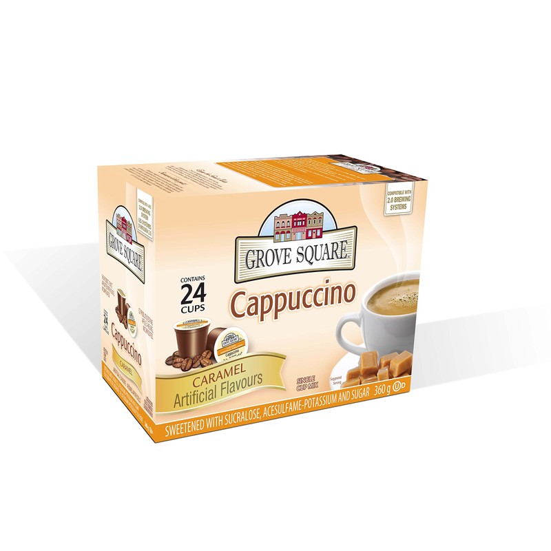 Grove Square Cappuccino, Caramel, 24 Single Serve Cups by Grove Square Cappuccino