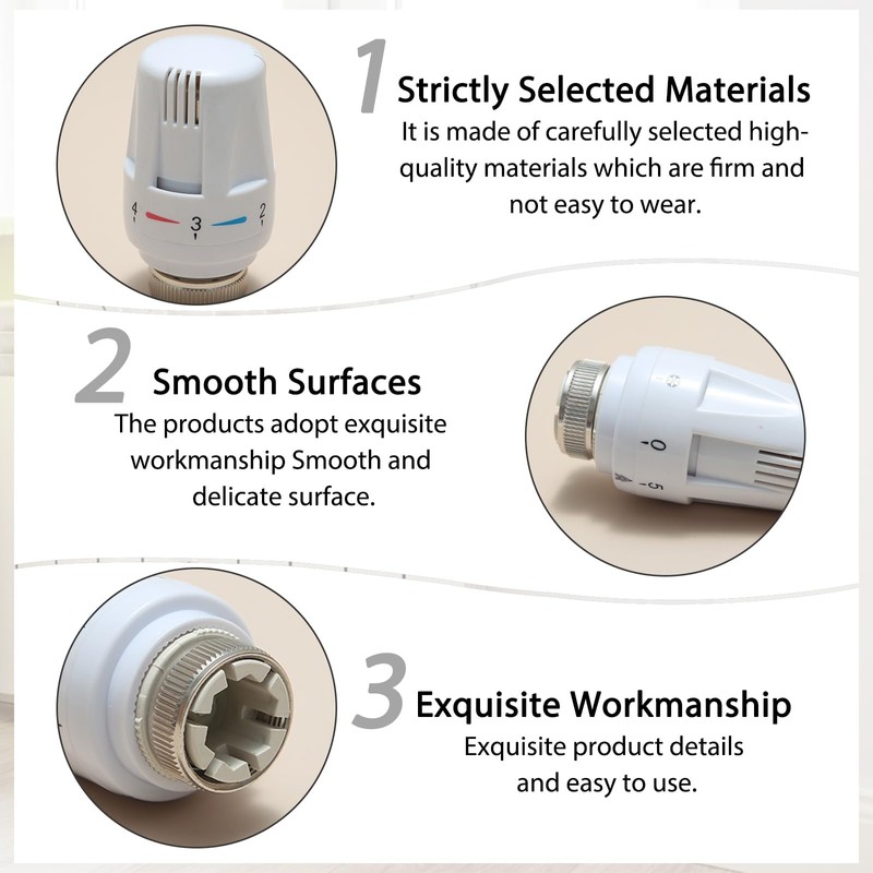 - ❤️ High-Quality Materials: Our radiator thermostat valve is crafted with a combination of premium plastic and alloy materials. This ensures excellent durability, reliable performance, and a long service life. The valve is designed to fit M30 x 1.5 threaded connections and measures 5cm x 8.5cm.