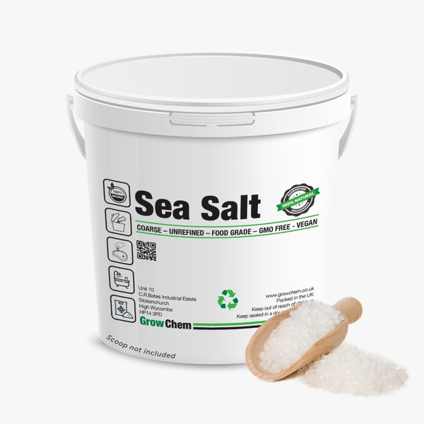 Grow Chem Natural Sea Salt, 1Kg Bucket, Pure Coarse Sea Salt Crystals, 100% Natural Salt, Gluten Free, Vegan and Kosher Certified for Cooking, Seasoning, Bath, Beauty and Salt Grinders