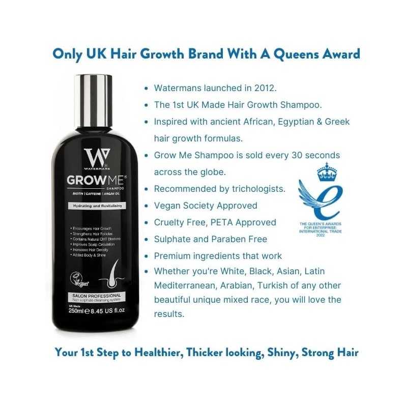 Unlike conventional wash-and-go products, Watermans Grow Me is designed for maximum effectiveness. For best results, leave the formula on your scalp longer than regular shampoo, allowing our superior ingredients to penetrate deeply and deliver essential nutrients directly to your hair follicles—the trichologist-recommended approach for promoting strong hair growth.