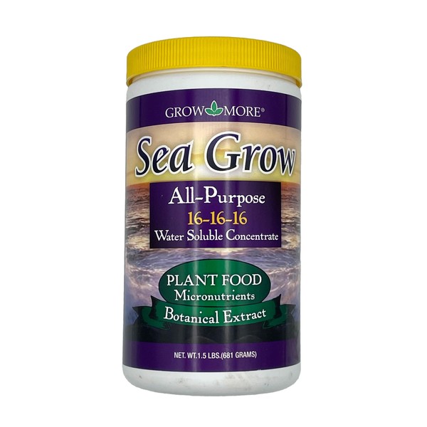 Grow More Sea Grow Kelp Fertilizer - 1.5lbs of 16-16-16 Water-Soluble, All-Purpose Plant Food - Nutrient-Rich, Seaweed Fertilizer - Outdoor & Indoor Plant Food